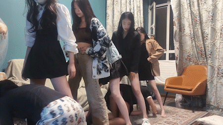 内容:校园暴力剧情,青春靓丽的五位美少女校园霸凌她们的两位室友,踩踹,让她们舔脚,转胯,互扇耳光,最后间接强制灌圣水,圣水洒一脸。