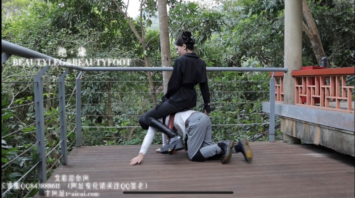 精彩的户外露出来啦!!! 有没有想象过自己在公园的凉亭里变成艾琳女神胯下的一匹马?旁边的马路上不时地会有路人经过,他们可是一扭头就会看见你下贱的被女神当成马骑的奇怪姿势哦!可是越是这样,越感觉到羞耻和刺激吧。毕竟在公园里时刻冒着露出被发现的危险,也要给艾琳女神闻脚舔脚舔女神走过路的脏靴子底(都有特写片段,45度m视角让你身临其境)