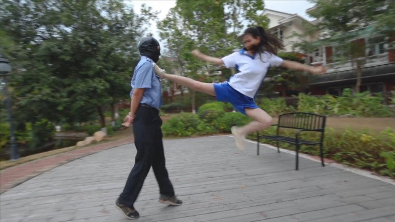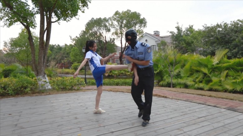 【内容简介】:芷晴扮演的学生小太妹,在校园抽烟,被保安看到了说了一顿。怎料保安碰到了个硬茬。放学后小太妹把保安喊道了公园里,拳脚相向,飞踹、暴踢,还有坐脸、腿绞。这次保安是彻彻底底被制服了。