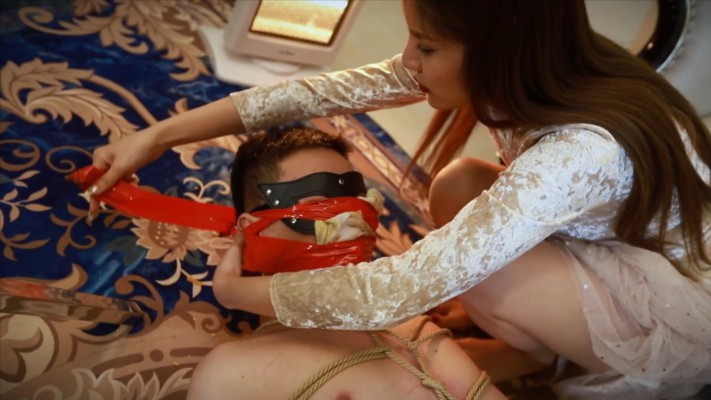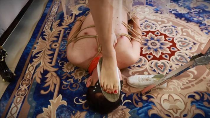 此时可怜的m嘴里真的是“五味杂陈”,尔岚不等他慢慢消化,用胶带把m的嘴巴封上,继续在他身上和裆部踩踏着,m一边品尝着各种原味,却有苦说不出......