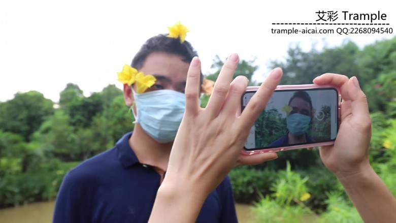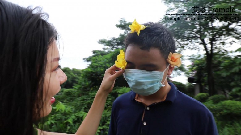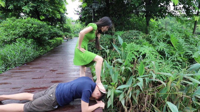 【内容简介】:在公园的园林里,芷晴戏耍起她的小奴。自己骑车让小奴跟在后面追着跑;把鲜花插在他的头上羞辱拍照,又骑着他脖子去摘果子;看到一口水井坏坏地让小奴洗脚,却坐在他身上,把他的头踩进水里、让他舔脚...还有欺负小奴生吃花朵等,随意的调教...