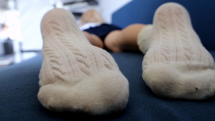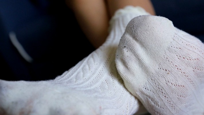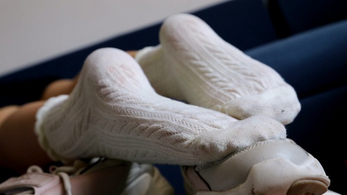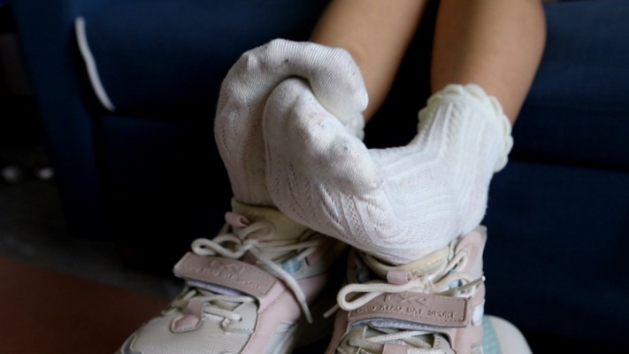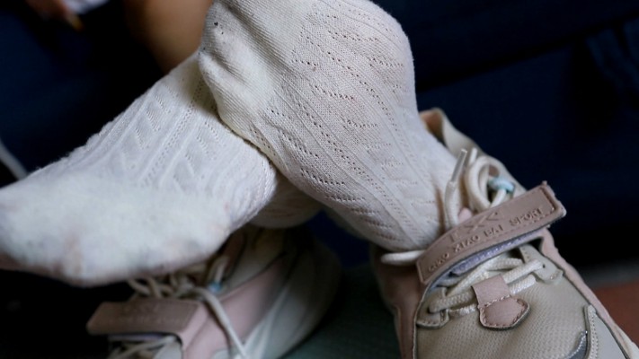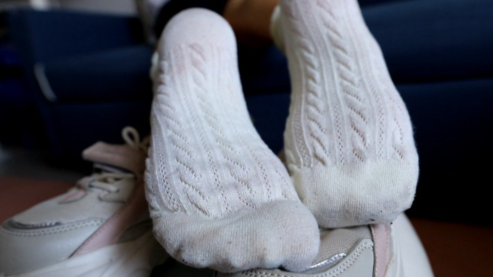 【珊瑚湾】Baby 秀运动鞋白袜脚底 少量跪舔