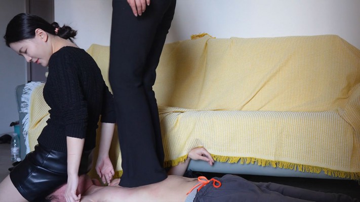 兮兮和蓝蓝女王巡游北京,脚奴前来侍奉没想到被脚耳光一顿暴打,坐脸窒息,脚趾夹舌头,双主全体重踩踏虐踩。