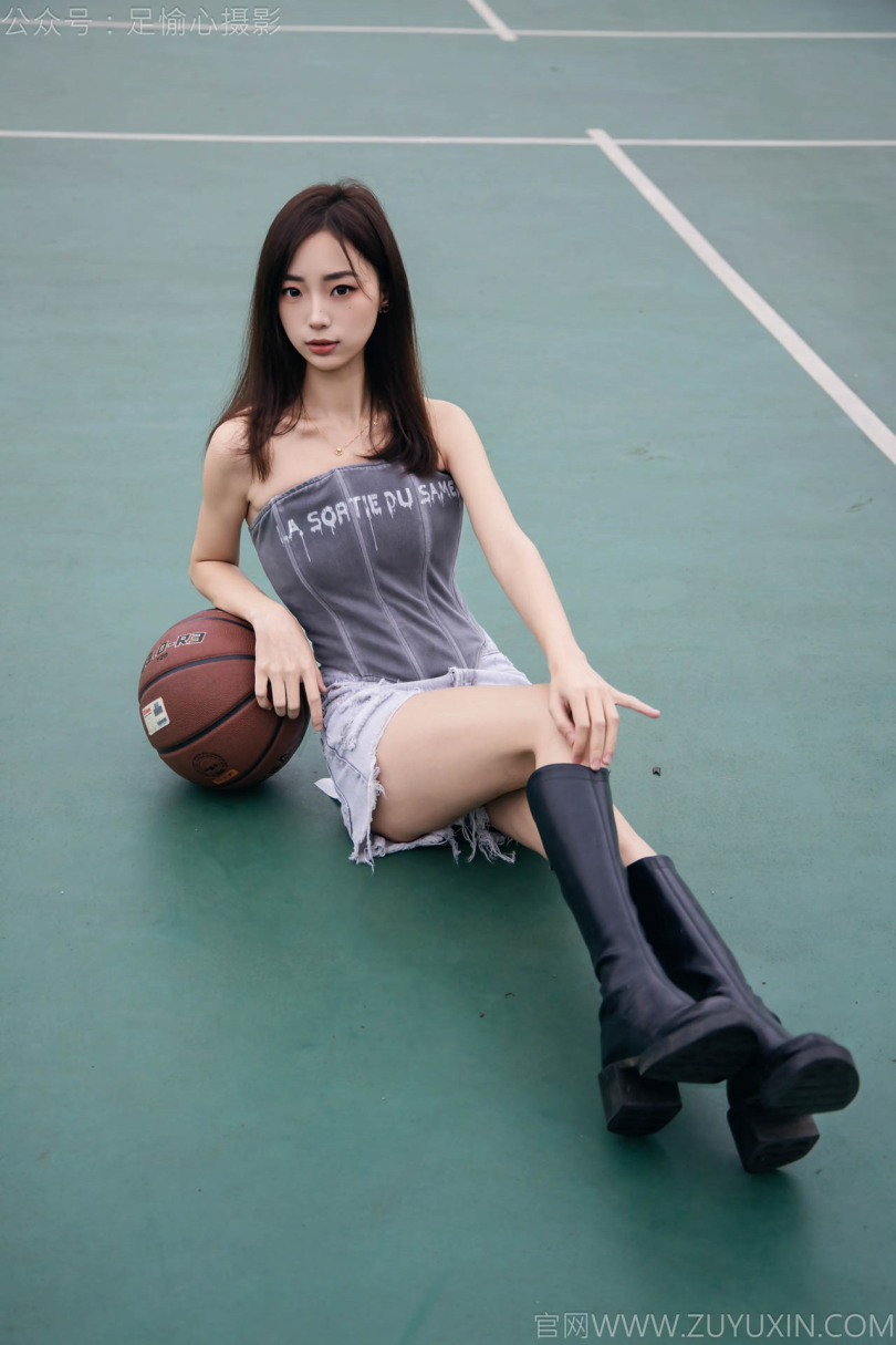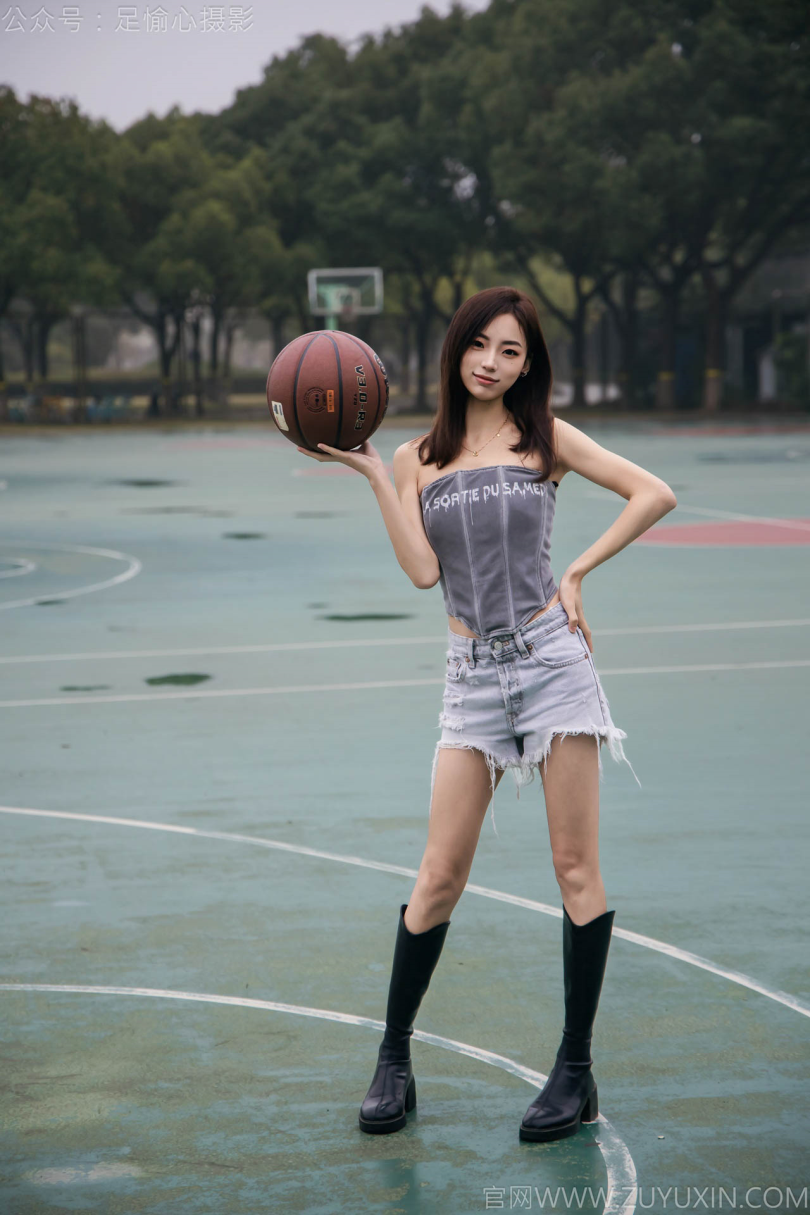 足愉心摄影第8期:模特布丁(搭配:抹胸、牛仔短裤、长筒皮靴、白色棉袜、裸足)