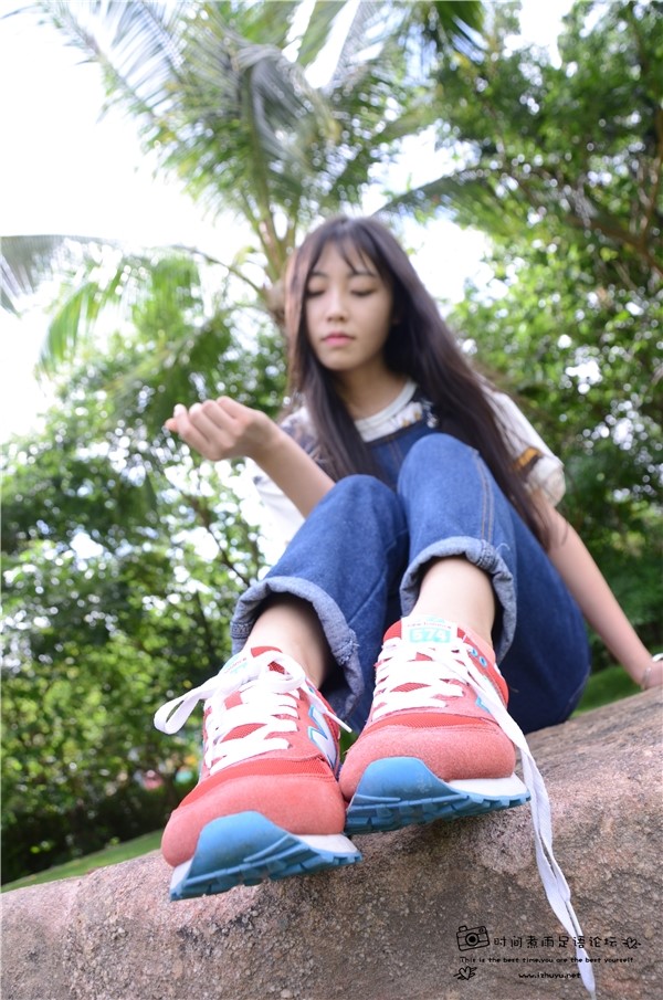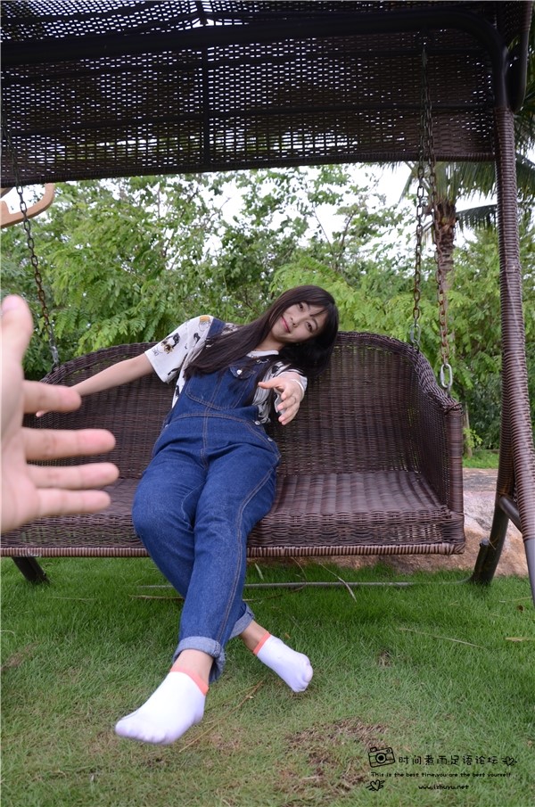 校花女神NewBalance背带裤白袜,艺术系牵手,吊床上的睡美人,蓝色甲油,被我随意摸脚