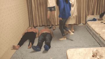 笑的那叫一个开心。。南一姐和宅七是在毫无征兆的情况下跑出来的,一点防备都没有。注意看动图的小伙伴会发现这次的高跟跳踩是鞋跟先下来。异常疼
