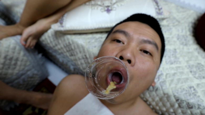 夏芙 瑞琪 芷晴3位美女无间断饱和式吐痰和吐食物,尤其是瑞琪 先是唾沫,之后就是嗓子里的痰 吸出来的鼻涕,黄的绿的 全来了,相当重口味。后半部分由于三个人吐出的东西太多,下水道堵了,芷晴站身上一顿跳踩,终于通了