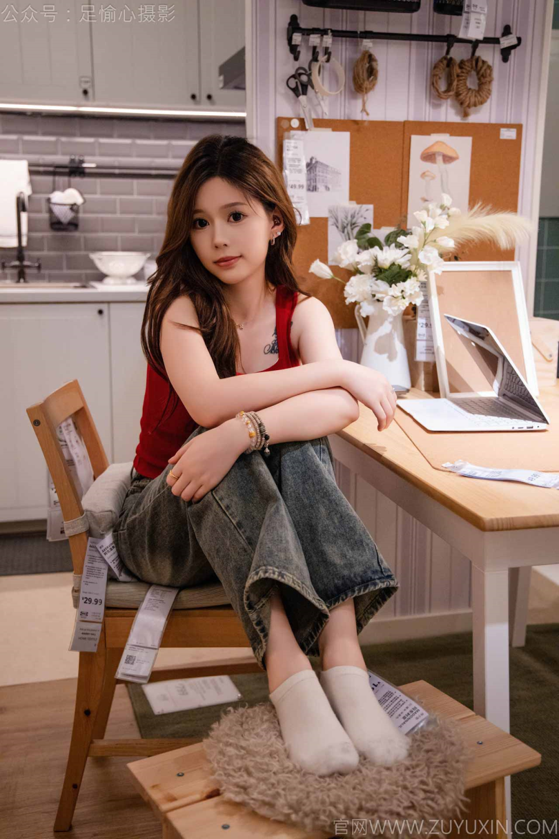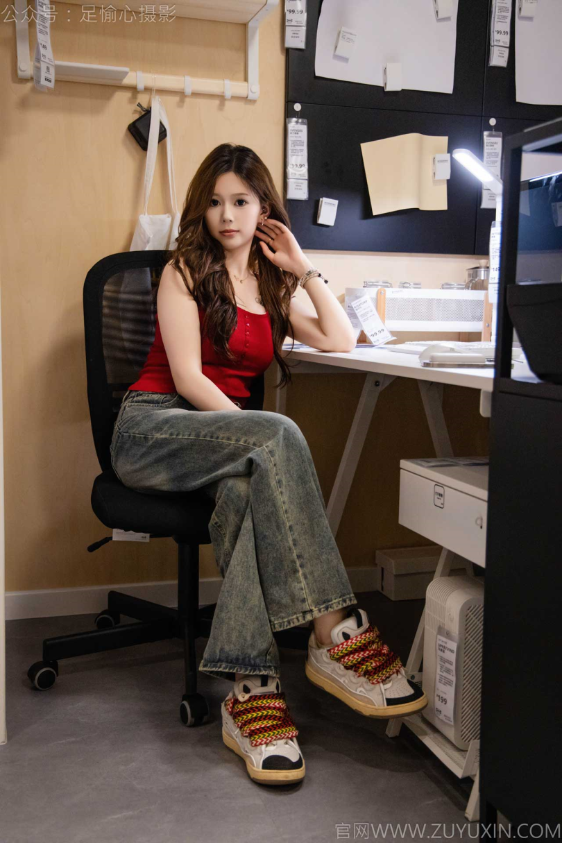 足愉心摄影第21期:模特心凌(搭配:红色吊带、牛仔长裤、宽松板鞋、白色棉袜、裸足)