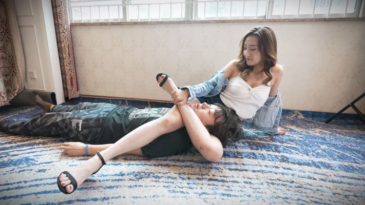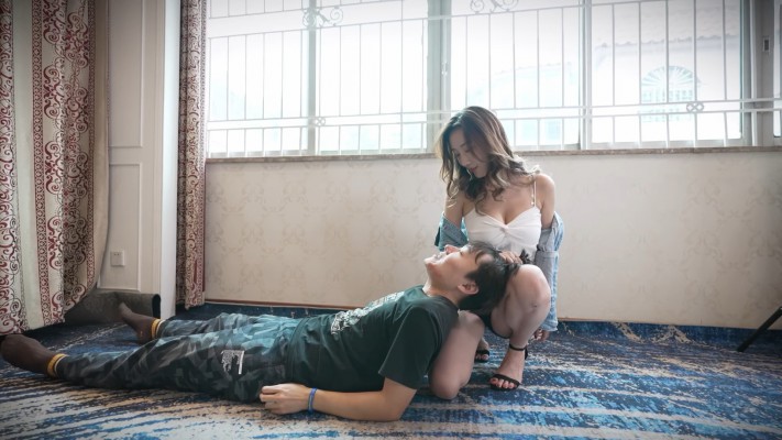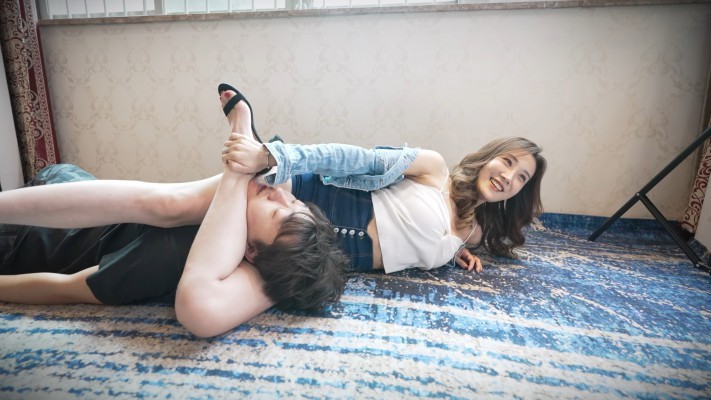 【内容简介】: 这次的奴很听话,影姬决定穿牛仔裤给他点奖励。先是对他腿绞窒息了一会儿;随后播放起中文DJ,坐在奴的脖子上,跟着音乐的律动翩翩起舞。节奏越来越快,影姬的牛仔裤也慢慢坐到了奴的脸上...