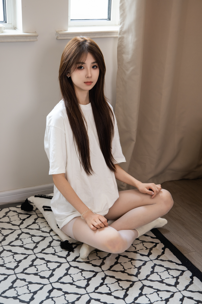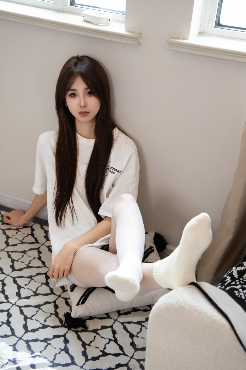 足愉心摄影第61期:模特小瑶(搭配:白色体恤、牛仔短裤、滑板鞋、白色丝袜、白色棉袜)