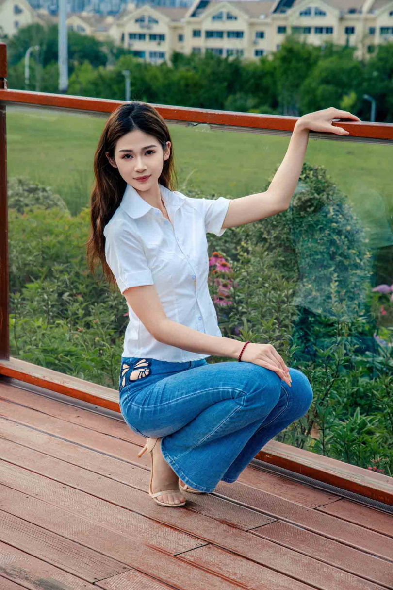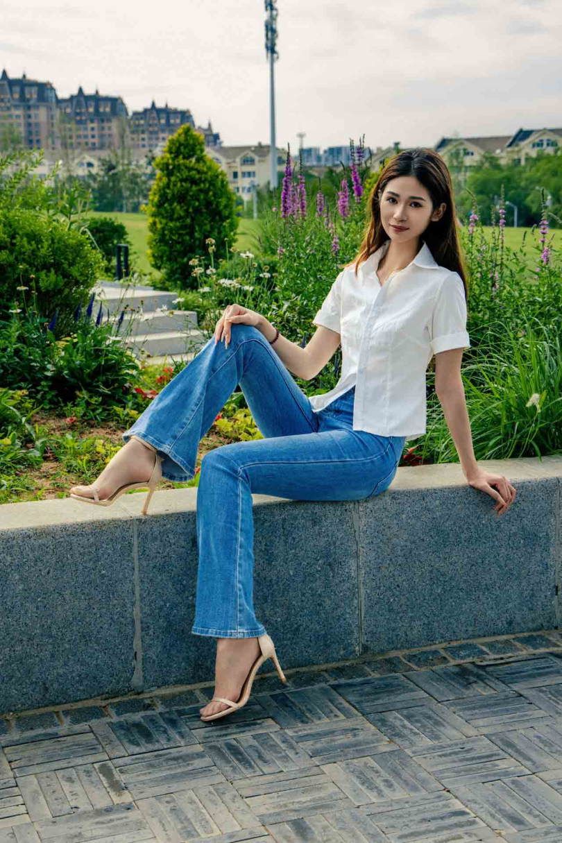 足愉心摄影第48期:模特沐晴(搭配:白衬衣、牛仔长裤、肉色丝袜、浅色高跟鞋)