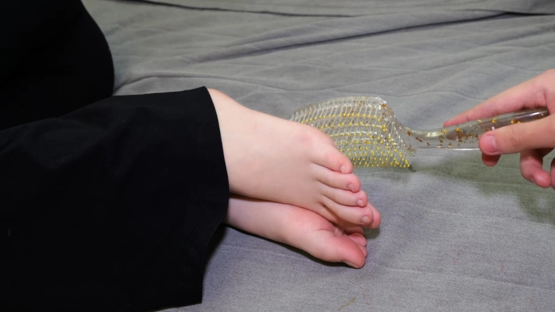 菌菌与小熙是舍友,一天菌菌喝了点酒回到家里躺在沙发上睡着了,不巧的是有一个图谋不轨的恋足男子,尾随并且进入菌菌家中,因为菌菌喝多了,忘记反锁,于是男人开始把玩菌菌的玉足,还绑起来,又是挠又是舔的,不一会儿小熙回来了,男人跑进卫生间躲了起来,小熙进入房间看到菌菌被绑起来,小熙以为是什么恶作剧就上前挠菌菌的脚丫,这时男人偷偷从卫生间出来,从背后用迷药捂住小熙的脸,小熙晕倒后,男人开始挠舔小熙的嫩脚丫,后来菌菌被告知刚刚小熙也参与了TK她,一气之下,菌菌便提出,把她松绑,让她来挠小熙进行报复,最后,菌菌和小熙一起被男子挠舔,故事到此结束。