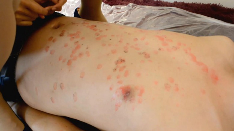 奴隶得有足够的奴性、对女王足够的崇拜,任由女王封着嘴,拿着蜡烛在身上不断滴落。即使被女王夹紧脖子腿绞,呼吸困难,也得承受着痛苦。