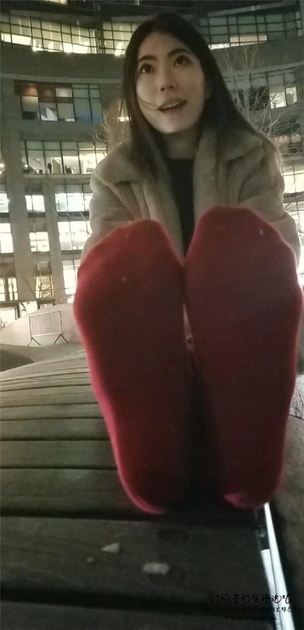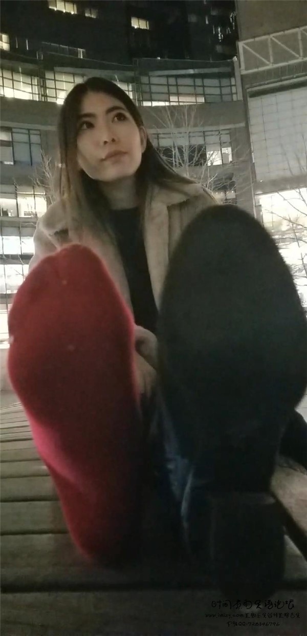 可可CoCo小姐姐C4首次外景拍摄脱靴红色棉袜瘙痒TK,最后脱袜秀裸足,冬季拍的哦,脚有点冷