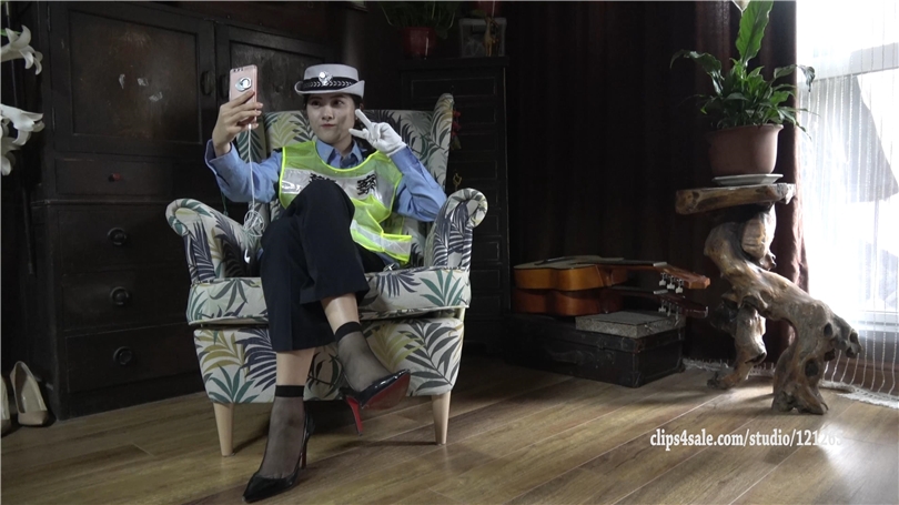 【K&M】呆萌交警可爱自拍超薄透黑丝高跟挑鞋秀脚