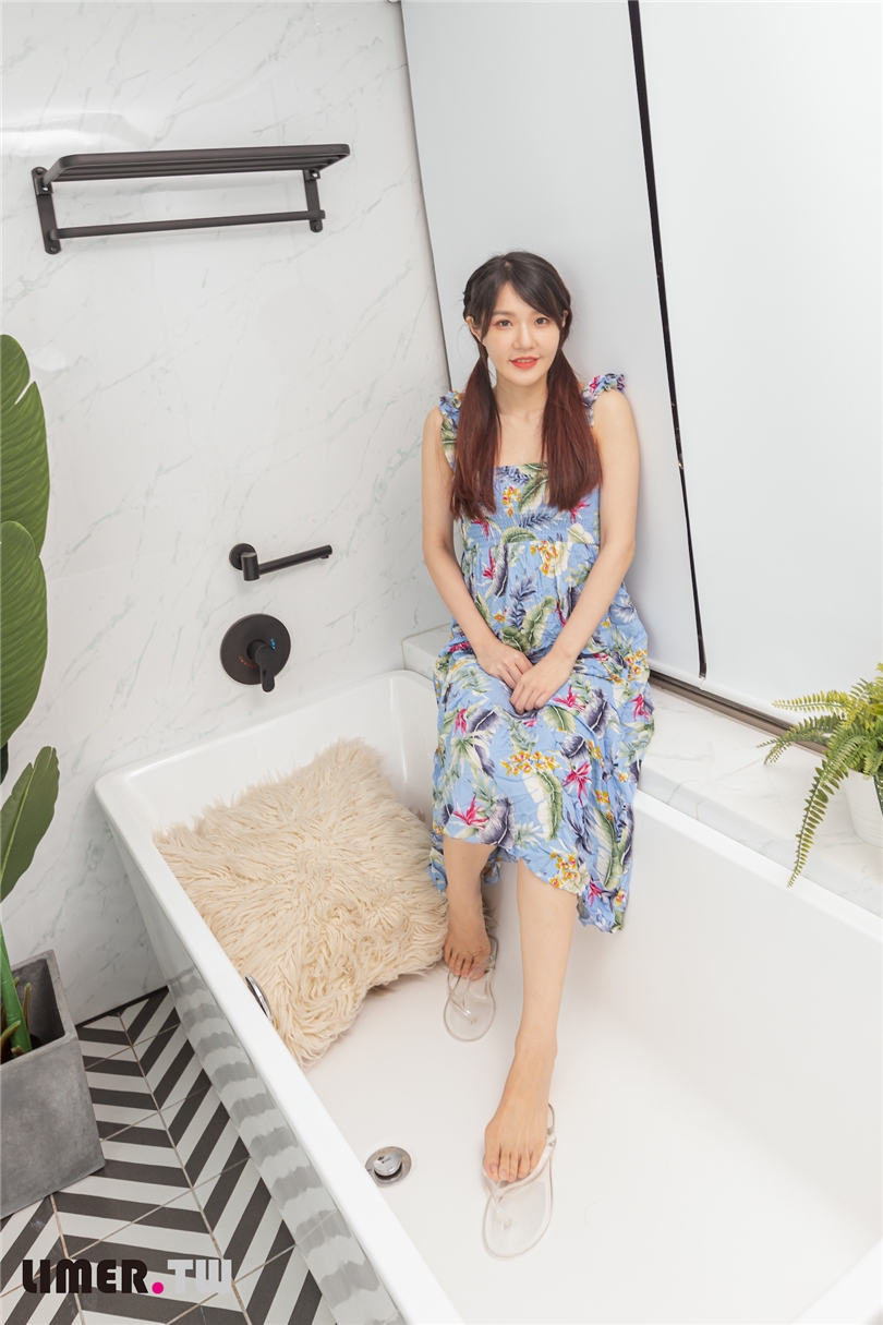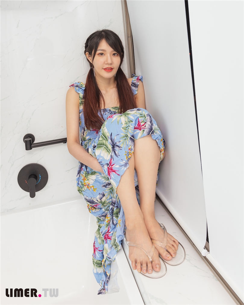 洗澡前 apple 用腳趾玩弄著透明夾腳拖