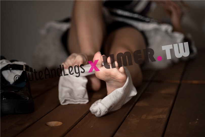 在打掃圖書間時脫去鞋襪透氣腳腳